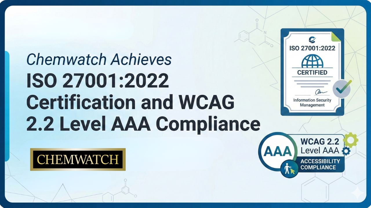 Chemwatch is proud to announce two major milestones: ISO 27001:2022 certification and WCAG 2.2 Level AAA compliance for our website